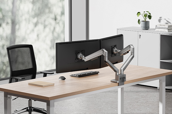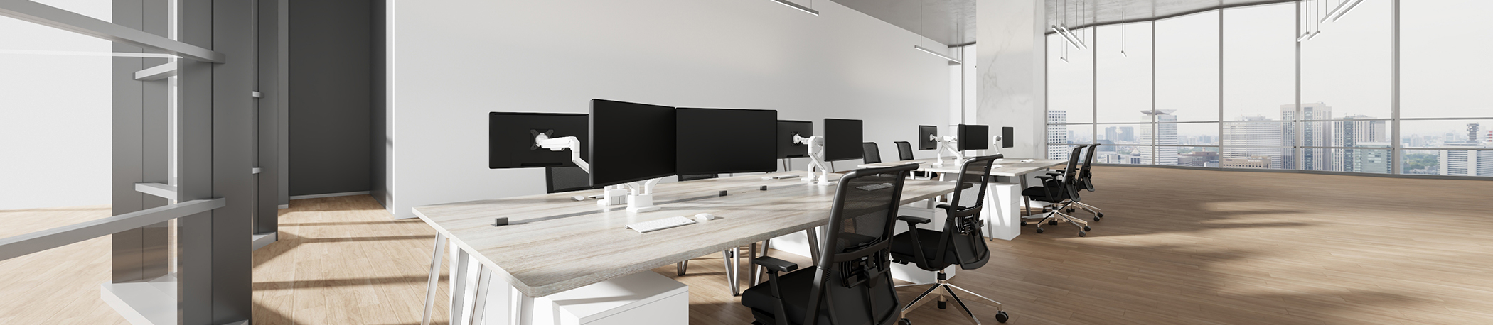 Meet the new NEXT Slim gas spring monitor arms that combine sleek design with practical comfort. These new ergonomic models are suitable for screens up to 35” (single)/32” (double) and can be easily adjusted to any height and viewing angle thanks to its gas spring and full motion technology. Additionally, the NEXT Slim desk mounts feature a nifty 180° stop mechanism that prevents the mount from making contact with a wall or separation panel when installed near it.