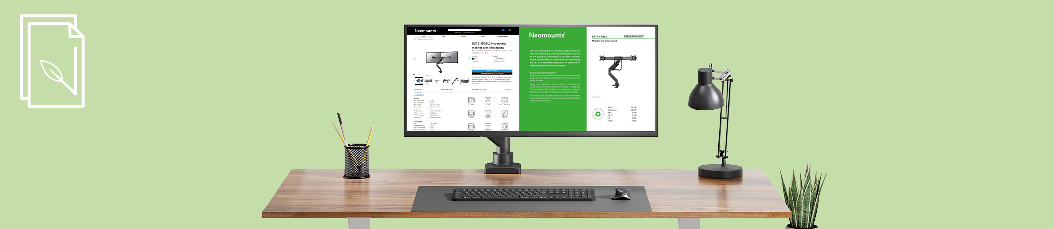 Amongst various other sustainable implementations, such as plastic-free packaging for various models. Neomounts have introduced product specific Greensheets.