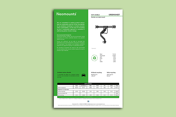 For more than 320 products in the Neomounts assortment a Greensheet is already available (and we will continue to add more).